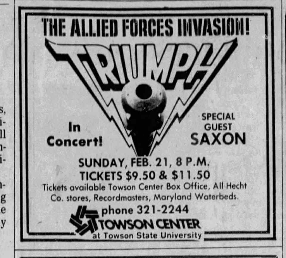 1982, Feb 21: Towson Centre Arena, Baltimore MD (with Triumph)