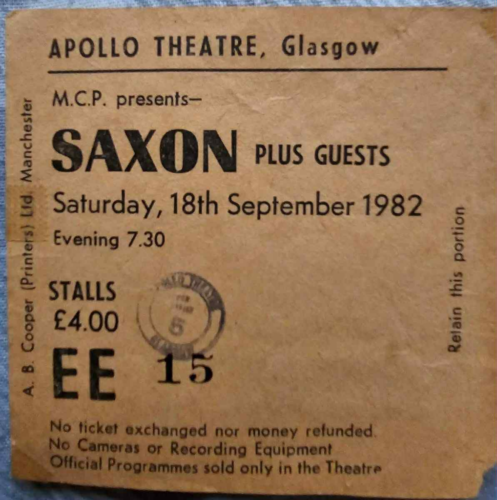 I have another tour date in 1982. I saw Saxon as the opening band for Molly Hatchet on March 5, 1982 at the Lake Charles Civic Center in Lake Charles, LA, US. In. your format:
