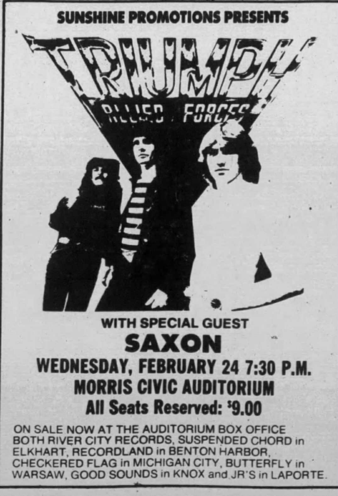1982, Feb 24: C. Morris Auditorium, South Bend, IN, USA (with Triumph)