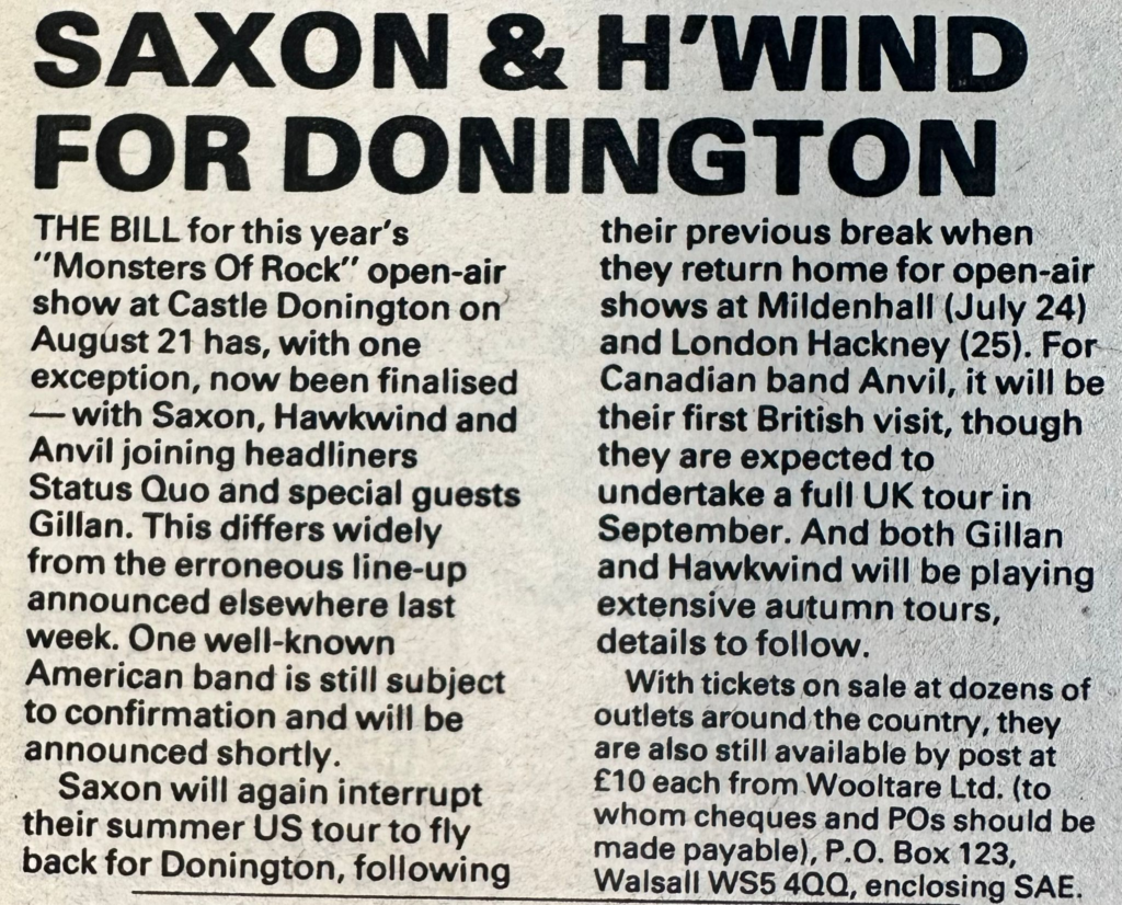 Did Saxon play 1982, Feb 28 Keyns TN USA (with Triumph)