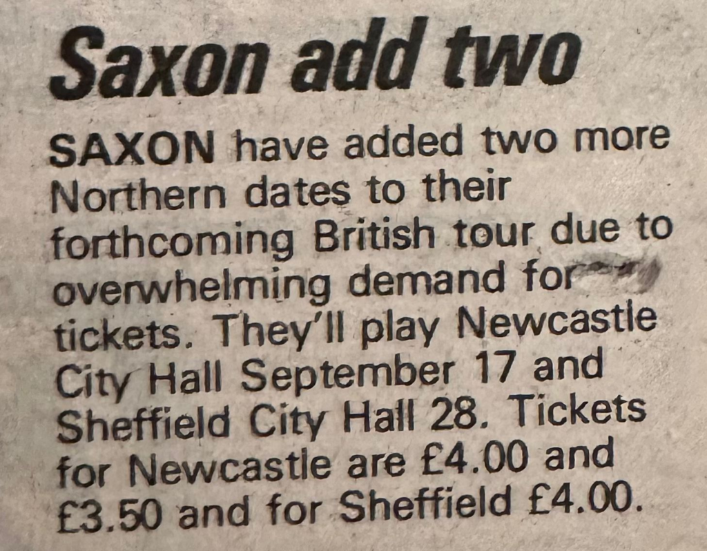This is Awesome ! I saw Saxon twice in 1983 while stationed in Germany.First in Mainz and later in Kaiserslautern.I am interested in the availability of merchandise,photos and recordings.Thank you William